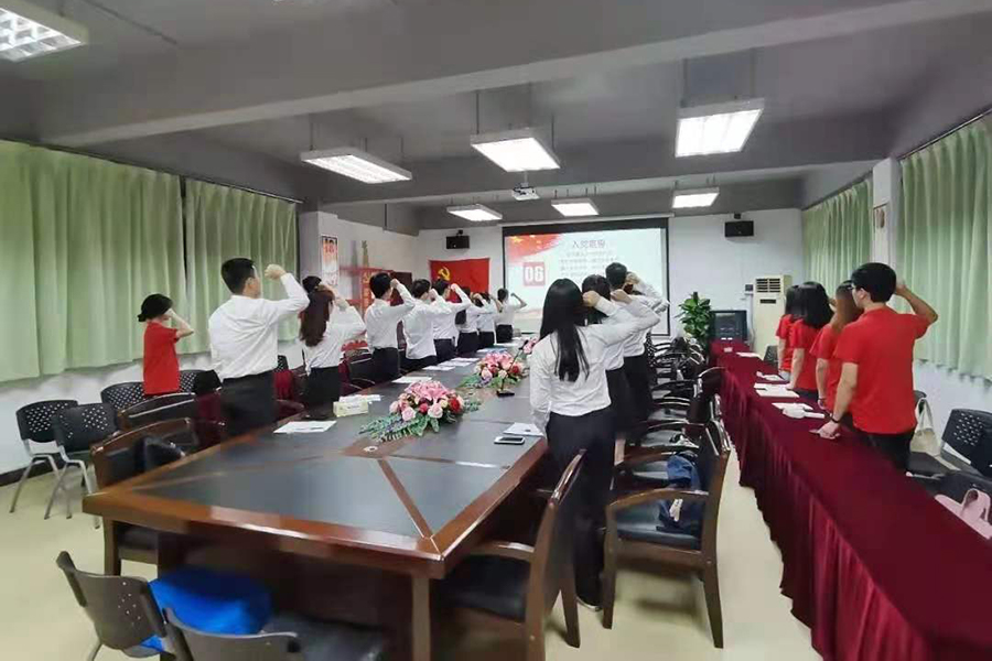 会议最后,全体学生党员起立面对鲜红的党旗,高举右拳庄重宣读入党誓词,铮铮誓言,让学生党员心中产生强烈的共鸣,立志做到在行动和思想上入党,在工作和生活中发挥先锋模范作用,做一名称职的、合格的、无悔于党员称号、无悔于入党誓词的一名共产党员。