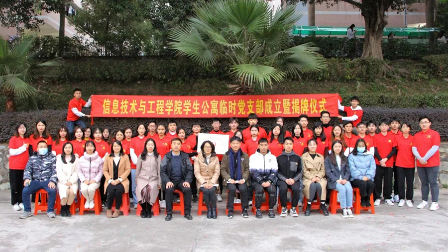 12月17日下午,信息技术与工程学院在广州商学院23、24栋学生公寓举行信息技术与工程学院学生公寓临时党支部成立暨揭牌仪式。本次活动旨在进一步充分发挥党员示范宿舍的旗帜作用,实现“以点带面”的目标。出席本次活动的有广州商学院学工部副部长张秋艳、党群工作部副部长翁楚歆、信息技术与工程学院党总支书记关俊明、学生公寓临时党支部书记兼20级辅导员甘志健、信息技术与工程学院各年级辅导员、信息技术与工程学院18(含19、20)级学生党支部全体同志以及学院部分学生宿舍代表。