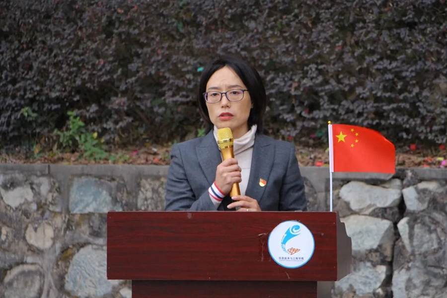 本次仪式在18(含19、20)级学生党支部优秀学生党员姚庚润同志的发言中拉开帷幕,姚庚润同志提出,本次活动使党员同志们能够在学院内部树立典型形象,以自身带动宿舍,再以宿舍带动班级,以班级带动学院,为学院建设贡献力量,此外,他代表学生对信息技术与工程学院学生临时党支部的成立表示衷心的祝贺,对校党委及各级领导对我们学生的关心表示衷心的感谢。发言完毕后进行仪式的第二项流程,关俊明、张秋艳和党支部优秀学生党员代表姚庚润、朱国华同志上台进行揭牌剪彩仪式,在全场的倒数声中,揭牌剪彩仪式顺利开展。随后,廖琪与甘志健给党支部党员宿舍代表进行授牌仪式,在授牌仪式结束后关俊明进行发言,他对公寓学生党支部的工作表示支持,同时提出了一系列公寓临时党支部的职责,要积极宣传执行党的方针政策,做好宿舍成员的思想引领,帮助学校公寓管理中心开展各项活动,此外要经常听取党员和同学的意见,深入群众,服务群众。最后由张秋艳进行致辞,她先是对公寓临时党支部的成立表示祝贺,接着表达了她对此次活动的认可和赞赏,她希望党员同志日后能更为严格要求自己,做好表率,在学院内部树立典型形象,在生活、学习、工作上发挥党员“传帮带”的先锋模范作用。