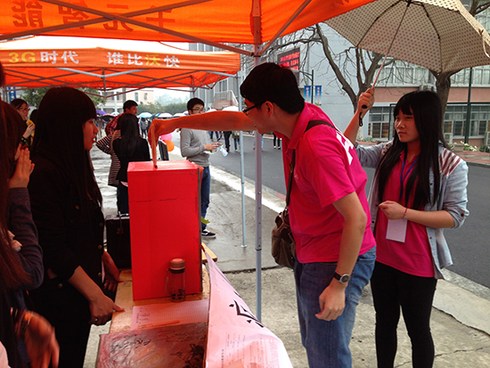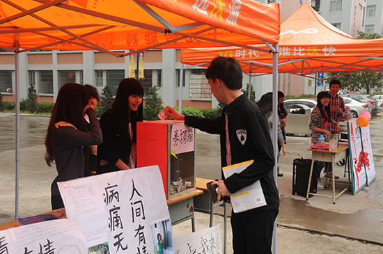 以“病魔无情,增院有爱”为主题的由计算机系团委举办的爱心募捐摆摊活动2014年3月20日中午时分在学院舞蹈室前持续开展。此次募捐摆摊活动主要为了帮助我系被病魔缠身的张海燕同学能够得到更好的治疗和尽早康复。