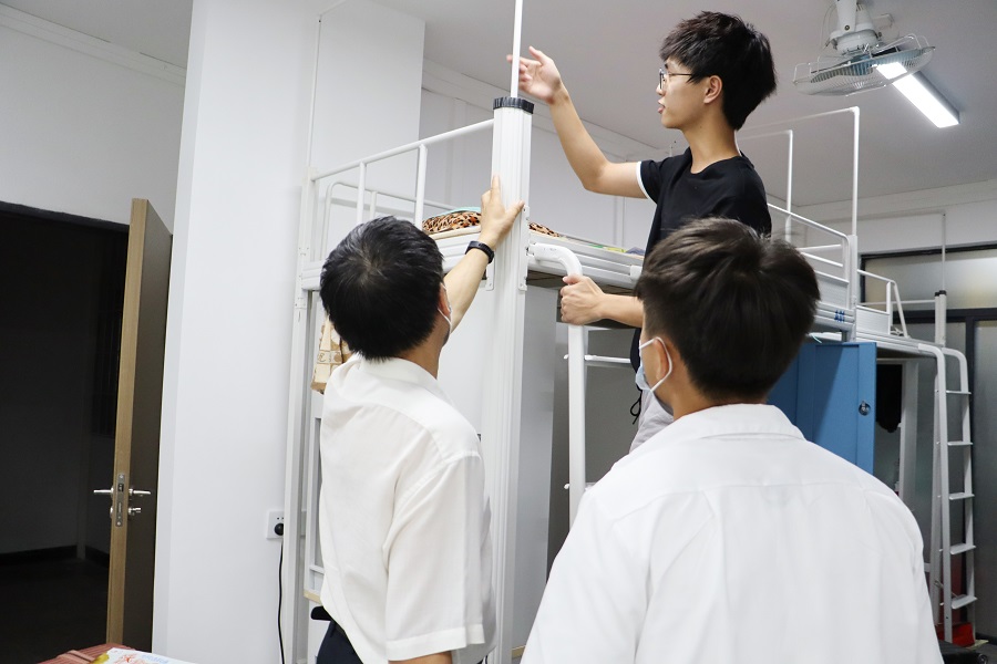 走访期间,关俊明对21级新生致以关心和问候,并与21级新生进行了亲切的交谈,询问住宿环境的适应程度、宿舍设施的完备情况,关心新生在学校的就餐、购物等方面是否便利,宿舍同学之间有无近一步深入了解。随后,他让同行的助理辅导员将21级新生所反馈的问题一一进行登记,并要求尽快跟进,切实落实到位。姜灵敏在走访过程中,认真叮嘱21级新生,要时刻注意自己的用电安全以及财物安全,保管好自己的贵重物品,时刻谨防受骗,对于在宿舍遇见的上门推销服务行为,一定要及时报告给助理辅导员以及宿舍管理处。吴广裕则鼓励21级新生要努力学习,专业课的学习要做到认真思考,深入研究,并对此提出了扎实学好专业基础知识的要求,希望新生们在专业领域能有所发展、有所作为,室友、同学之间要互帮互助、共同进步。同时还要注意加强身体锻炼,保持健康的生活作息和良好生活习惯。随行的助理辅导员耐心地回答了21级新生的疑惑,细致入微地关心21级新生的学习和生活情况,希望他们能及时调整状态,以积极向上的精神面貌开启新征程、迎接新挑战、创造新成绩。