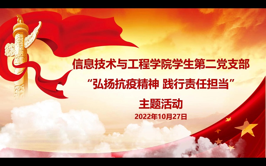 为庆祝党的二十大胜利召开,扎实做好党的二十大学习宣传教育工作。10月27日信息技术与工程学院学生第二党支部在第六教学楼205活动室召开个人抗疫故事分享会。参加本次会议的有支部书记杨艳美同志,教师党员甘志健同志、龙霖同志、谢耿同志以及全体学生党员。本次会议由植伟洁同志主持。