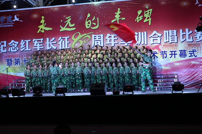 2016年9月21日晚,由广州商学院主办的“永远的丰碑”——纪念红军长征80周年军训合唱比赛暨第十届体育节、第十一届校园文化艺术节开幕式在广商田径运动场隆重举行。莅临本场比赛的领导和嘉宾有军训团团长李冲、校党委书记谭马利、副校长吕泉荣、校长助理贺浪萍、校长助理张忠福以及各学院、部、处的领导和老师。
