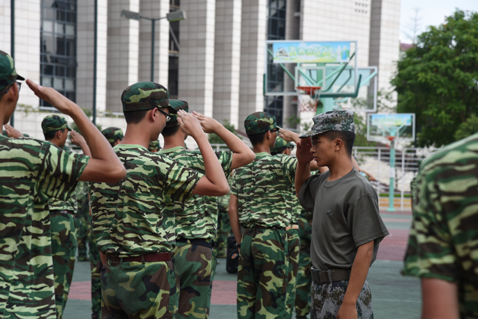 教官纠正学生敬礼动作