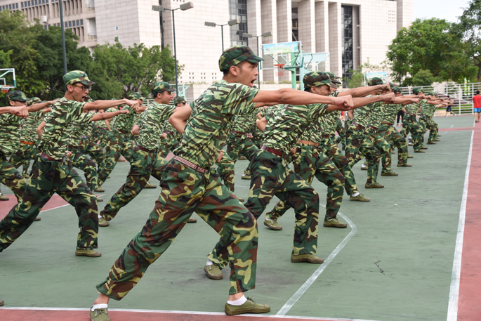 骄阳似火,似乎并没有怜惜军训中的16级新生们,反而更像是对新生们的考验。面对考验,新生们并没有退缩和气馁,而是在陈素婷老师和学长的鼓励下积极勇敢地接受烈日的挑战。信息技术与工程学院2016级新生的军训依旧分为两个方队。一个是由男生组成军体拳方队,另一个是由女生组成的方队。军体拳方队经过了五天的刻苦训练,新生们打的军体拳,拳拳有力,取得到了很大的进步,也取得的教官和学长们的肯定。除了练习军体拳,男生方队还学习了敬礼项目。新生们严肃的表情,挺拔的身姿,确实与军人有几分相似。女生方队也开始了练习新项目——正步。教官以逐步分解动作的方式教学,让同学们更容易更快地掌握动作要领。女生们听从教官的指挥,学得又快又好。