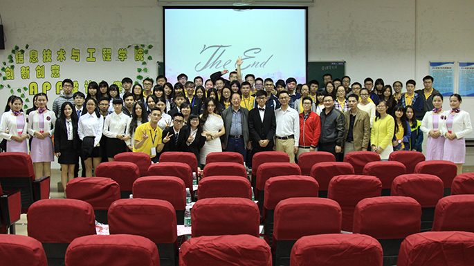为积极引导我校学生在创新创造中提高自身素质,激发其创新热情和创造激情,在日常生活中贡献自己的聪明才智,信息与技术工程学院团委举办了创新创意APP设计大赛,并于2015年12月24日19点30分在第二学术报告厅迎来了决赛。出席本次活动的有信息技术与工程学院院长陶培基、副院长吴广裕、党总支林俊杰书记、团委书记王轻纱老师、学习会信息技术与工程学院分会指导老师黎文婷老师、物联网教研室主任李绍强老师、网络教研室主任王新忠老师、校和各院系兄弟代表,以及信息学院15级学生。