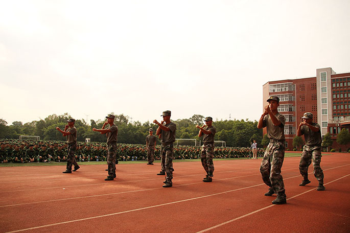 最后,教官进行了队列训练、军体拳表演,看着他们身姿挺拔,整齐划一、一丝不苟的动作,每一个口号都喊得气势恢宏,每一处细节都充满力量,同学们的眼睛里写满了惊讶,油然升起一种敬畏和崇拜。
