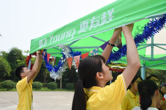 2016年9月26日-27日,广商信息技术与工程学院团委学生会在广商篮球场进行招新摆摊宣传。早上,小黄人一下课就直接奔赴篮球场,进行摊位布置。彩球飘飘,彩带飘扬,摊位被布置得可爱温馨。