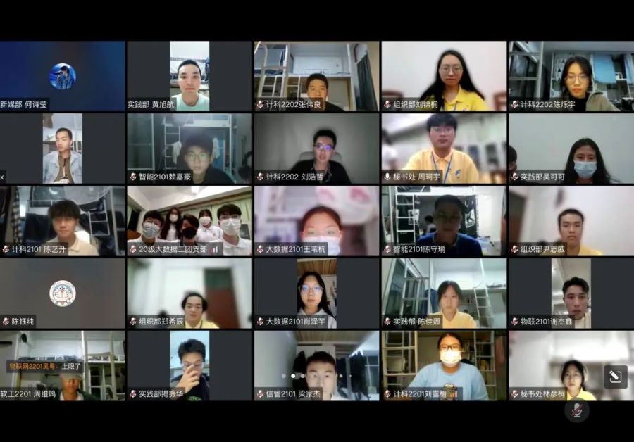 活动伊始,全体人员齐声奏唱团歌。随后由2020级大数据二班团支部带来团日节目。首先冯树斌从节目背景、目的等两方面进行介绍让各成员能够迅速了解节目概况,紧接着蓝佳琪讲述中国共青团的历史,最后李奕龙讲述党领导中国青年运动的光辉历程并帮助新生团员了解党的二十大、团员的权利和义务。到作品展示环节,由陈嘉蕙、舒浩、戴鋆三人一起展示“web+数据采集”,他们运用大数据技术学习党的二十大,响应科教兴国战略,鼓励同学们了解科技知识,并号召同学们迎接科学技术新春天,开启创新发展新时代!活动尾声,团委书记陈钰纯作总结。她称赞2020级大数据二班团支部带来的团日节目,希望其他团支部向他们学习,同时也更希望各团员努力学习党史,弘扬伟大建党精神,争做新时代新青年!