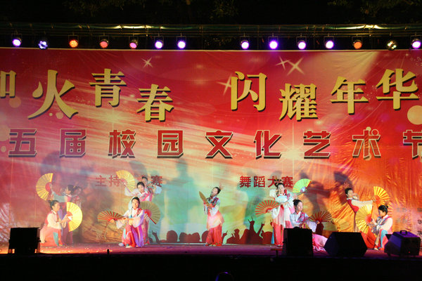 华南师范大学增城学院第五届校园文化艺术节之“舞动增院”舞蹈大赛决赛于12月5日晚上19:30在足球场正式开始,这是学院学生会和计算机系学生会为增院学子精心筹划的舞林盛事,在学院党委谭马利副书记的精彩致词后,各系的舞友在绚烂靓丽的彩灯和震撼人心的欢呼声中,一展风采舞技。