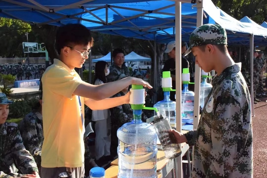 为助力2022级新生顺利完成军训任务,信息技术与工程学院团委、学生会学生骨干提前规划、组织,在军训休息区设置团学服务点,为新生提供贴心志愿服务。