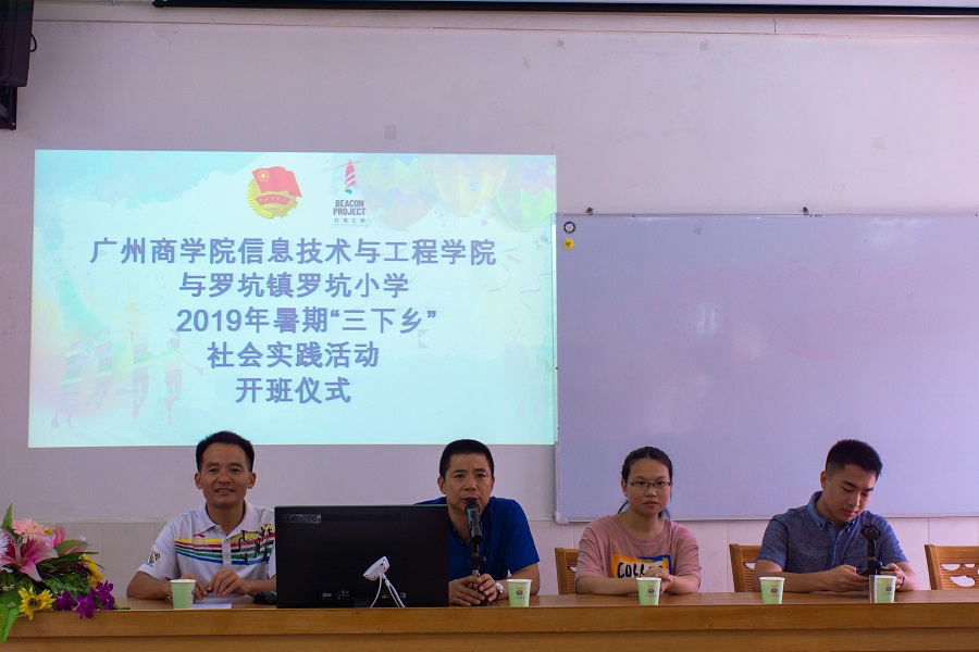 为增强当代大学生责任感与使命感,促进本次暑期三下乡社会实践活动的顺利进展,“e启逐梦”三下乡服务队于7月15日上午在多媒体教室召开了广州商学院信息技术与工程学院与罗坑镇罗坑小学2019年暑期“三下乡”社会实践活动开班仪式。出席本次开班仪式的嘉宾有罗坑镇政府团支部陈书记、罗坑小学校长林潮剑、陈均宝主任、林明采主任、服务队指导老师郑开勋以及35名队员。开班仪式由服务队队长梁瑞聪主持。