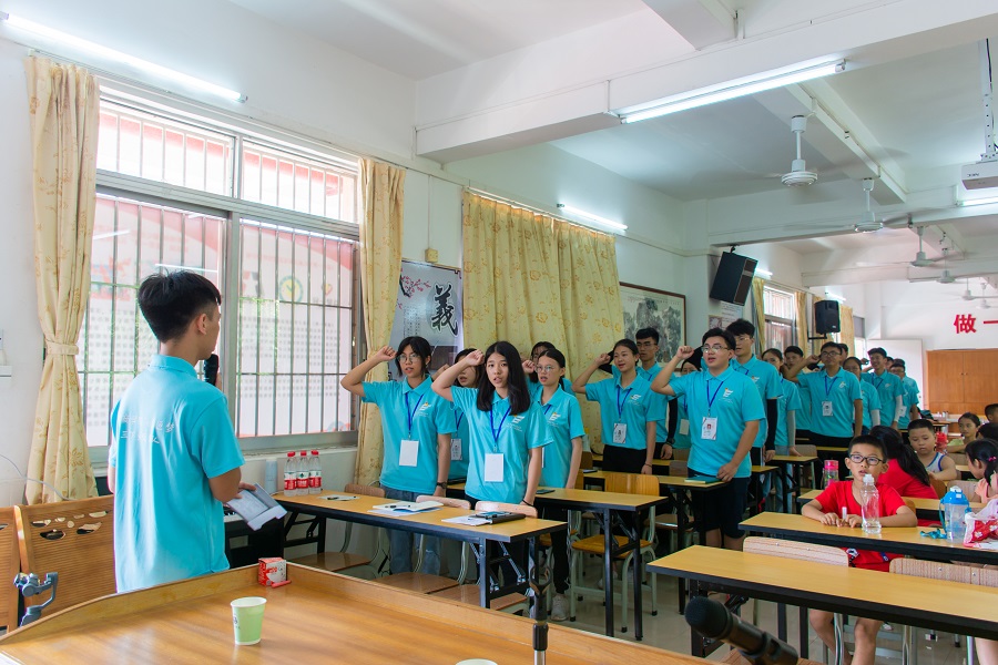 会议伊始,罗坑小学校长林潮剑发言,欢迎队员们到来的同时也感谢队员们的辛勤付出,希望同学们能够向队员们学习,也希望同学们能够珍惜这次学习的机会,同学之间也要相互关心,互相学习;此外,校长还着重强调了学生的人身安全,要求学生要遵守学校的规章制度,听从指挥,服从安排。随后,陈书记对于服务队队员的到来表示欢迎,希望同学们拥有一个充实的暑假,给自己留下一个美好的回忆,也预祝此次三下乡暑期社会实践活动圆满成功。接着罗坑小学陈均宝主任表示学生能够拥有这次互相学习的机会,希望大家能够认真学习,学有所成,度过一次安全、开心的暑期夏令营活动。然后是此次“e启逐梦”三下乡服务队指导老师郑开勋老师给服务队队员提出了相关要求,希望大家遵守制度,圆满顺利开展此次三下乡社会实践活动。最后,“e启逐梦”三下乡服务队队员进行了宣誓仪式。伴随着队员们铿锵有力、激情昂扬的誓词,此次开班仪式也落下了帷幕。
