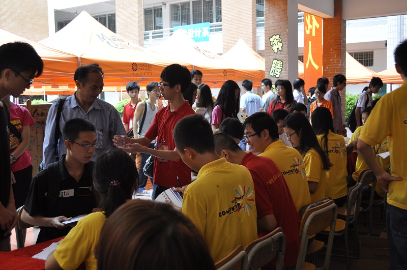 站在夏天的尾巴上,抬头仰望,又是一年开学季。九月三号这天,华南师范大学增城学院计算机系正上演着这样的一幕:五点半准时起床,六点集合完毕,六点三十分正式开始工作。灰蒙蒙的天色下,计算机系学习会、团委学生会的干部们有组织有秩序的布置着迎接新生的大本营。今天,是我们新生入学报到的日子。