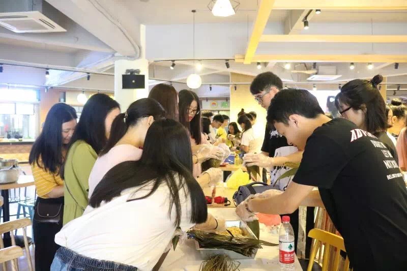 活动开始,主持人让大家先用抽签的方式分好了组。首先进行的是名字接龙环节,让干部们在最短的时间记住同组成员的名字,为接下来的活动打下了坚实的基础。接下来的环节是包粽子,每个人都通过观看大屏幕的视频和饭堂阿姨的细心讲解,学习如何包粽子。接下来到干部表演时间。第一个节目是由信工学院干部带来的歌曲表演《price tag》,虽全程清唱,却也无法掩饰演唱者清亮的歌喉及惊艳的音色。小品《僵局》引得在场的同学捧腹大笑,各种夸张的表情和动作体现了他们的精心准备。接着由外国语学院干部带来的歌曲串烧和舞蹈表演表现出了他们多才多艺的一面。不同的歌曲完美衔接,流畅的舞蹈赏心悦目,让大家无不拍手叫绝。紧接着就是《你划我猜》环节,台上的干部为了表述出自己看到的词语,手脚并用。台下的干部绞尽脑汁,想让自己队伍得到最高的分数。他们彼此的默契配合让人拍案叫绝,友谊也由此更近一步。游戏环节过后,大家津津有味地吃着粽子,吃完后自觉把卫生搞干净再离开。