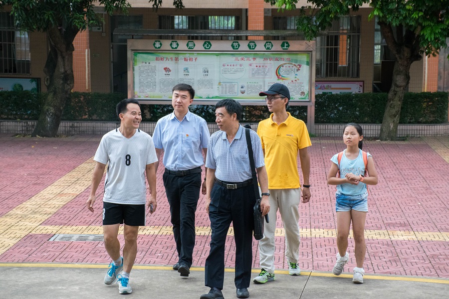 远客沓来,幸甚至哉。7月20日,信息技术与工程学院院长姜灵敏、党总支书记关俊明、副院长吴广裕一行亲临江门市新会区罗坑镇罗坑小学,探访慰问“e启逐梦”三下乡服务队并为服务队带去慰问物资。罗坑镇政府团委书记徐雅碧、团委副书记陈秀敏、陈启康,罗坑小学主任陈均宝、陈耀强,以及服务队指导老师郑开勋一同接待了姜灵敏一行。