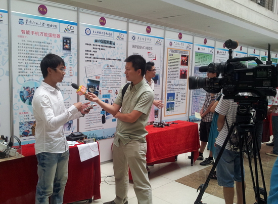 10月21日,由广东省教育厅举办的首届广东省大学生创新年会在华南理工大学举行。我系王耿彬、谢镇秋和钟礼健3位同学共同研发的“智能手机万能遥控器”项目,在邓保清、黄玉婷老师的指导和带领下参展并被评为“最受欢迎项目”。此外,项目小组成员现场接受了南方电视台新闻记者的采访和进行作品讲解。