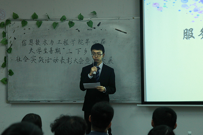 通过本次表彰大会,同学们从中了解到举办“三下乡”社会实践活动的意义,并感受到服务队队员参与社会实践活动的热情,展现了一个当代大学生收获真知的平台。在此也期待信息技术与工程学院在日后的三下乡活动中能做出更大贡献,再创佳绩!