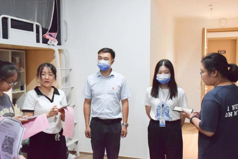 为了解我院新生在校生活状况,帮助新生更快适应大学生活,并向在校新生普及在校防疫知识,创建一个良好的校园生活环境,信息技术与工程学院于9月18日晚开展了宿舍慰问走访活动。信息技术与工程学院党总支书记关俊明在2022级辅导员饶宏玉、朱国华、李果香的陪同下走访看望了2022级新生。