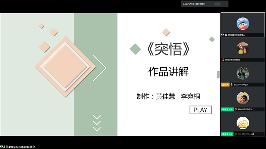 比赛伊始,由吴广裕副院长发表讲话。在主持人介绍比赛规则后,比赛正式开始,六部作品相继进入观众们的视线。技术性高且独具特色的参赛作品为观众呈现不一样的视觉体验,作品问答环节让观众了解到作者创作的初心及感悟。内容有趣、内涵深厚的参赛作品在吸引观众的同时,引发同学们对于生活中种种现象的深思。选手相继展示完作品后,李天昊老师做出点评,赞扬并肯定了参赛选手的创作水平及作品感染力。最终获得本次比赛一、二、三等奖及优秀奖的作品分别是:《健康大作战》、《突悟》、《活在当下,不负韶华》、《活在当下的你,感觉就像小鹿乱撞》。