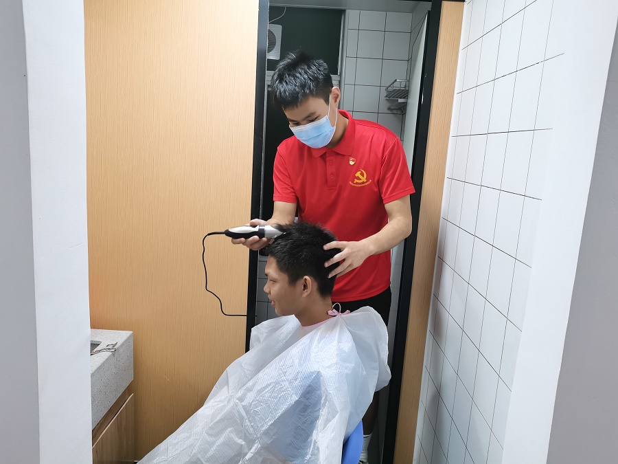 此外,学生党支部成员在走访宿舍的过程中,了解到新生中有些男生因为军训的要求而有剪发需求后,学生第三党支部决定本着为同学服务的宗旨,开展寝室“义剪”活动,并在当晚组织了“上门义剪”。为我院新生提供便利,让新生以全新的面貌迎接军训的到来,彰显青春气息。