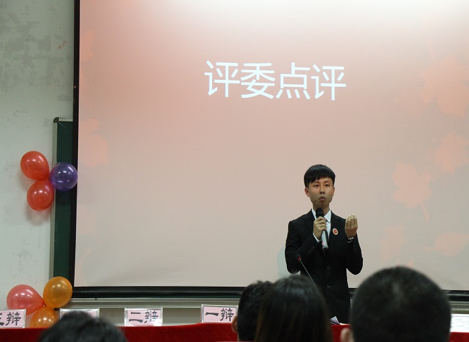 在双方辩论结束后,评委14级校辩论队队长张业港对本场辩论赛进行了专业的总结,表示双方辩论出发点各不同,表现优异。随后,陈素婷老师也对本次辩论给予了高度评价,并希望16级新生们能积极参与辩论赛中,感受辩论带来的语言魅力,同时感谢林俊杰书记能在百忙中抽空为辩论赛增添光彩。