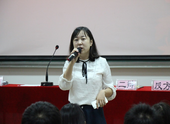 本次辩论赛由王莉老师致开幕辞,王老师讲到,从语言诞生开始,辩论就随之产生,辩论是人类最广泛的活动,辩论赛也是最受我院学生欢迎的项目,她以平实而不乏哲理的言语表达了对本场辩论赛表演赛的期待。