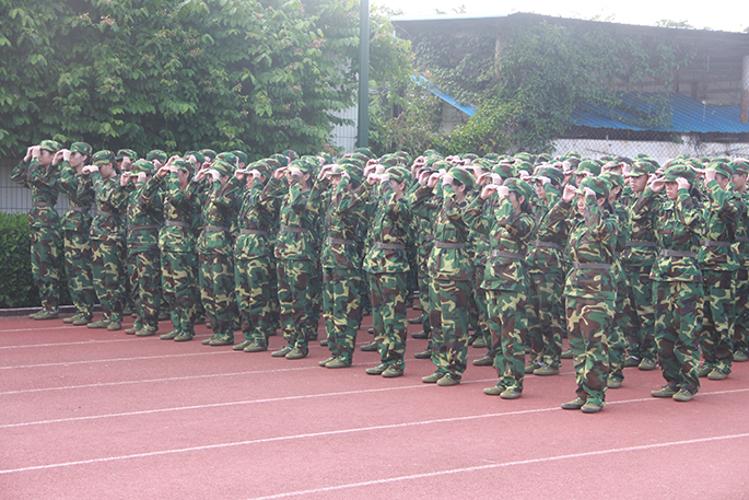 “原地踏步走,一二一、一二一......”伴着教官的口令,操场上响起了新生们铿锵有力的踏步声。在炎炎烈日下,新生们湿透的衣服和认真的神情都显露出坚韧不拔的精神。长时间的辛苦训练后,新生们等到了休息时间,脸上终于露出了灿烂的笑容;教官们严肃的神情也慢慢变得亲切,他们教新生们唱军歌,操场响起《强军战歌》,此时场景令人振奋不已。