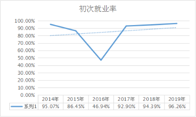1.毕业生初次就业率发展趋势来看,近三年来稳步增长,今年较去年增长1.87%。