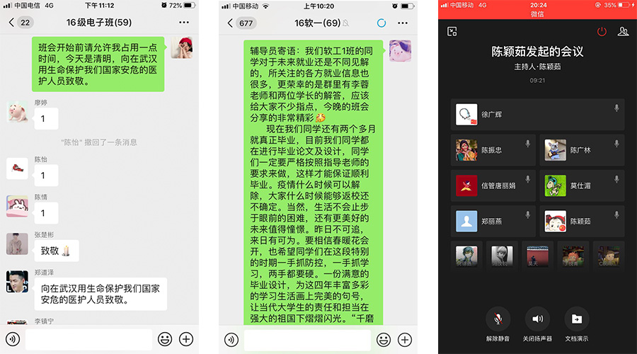 受当前疫情影响就业形势日益严峻, 2020届毕业生迎来“史上最特殊”的毕业季。我院各毕业班利用“腾讯会议”平台、企业微信及班级微信群召开班会,主要围绕疫情形势下的就业政策推广、就业指导、就业形势分析、就业方向选择、就业岗位推荐、警惕求职诈骗以及经验分享等方面展开,为同学们深入全面了解就业择业做好充分准备。